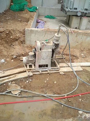 3)钻机与高压灌浆泵之间的距离不得太远。钻孔位置与设计位置的偏差不得大于50mm。应详细记录每个钻孔中的实际孔位、孔深和地下障碍物、孔洞、涌水、漏水以及与工程地质报告不一致的情况。